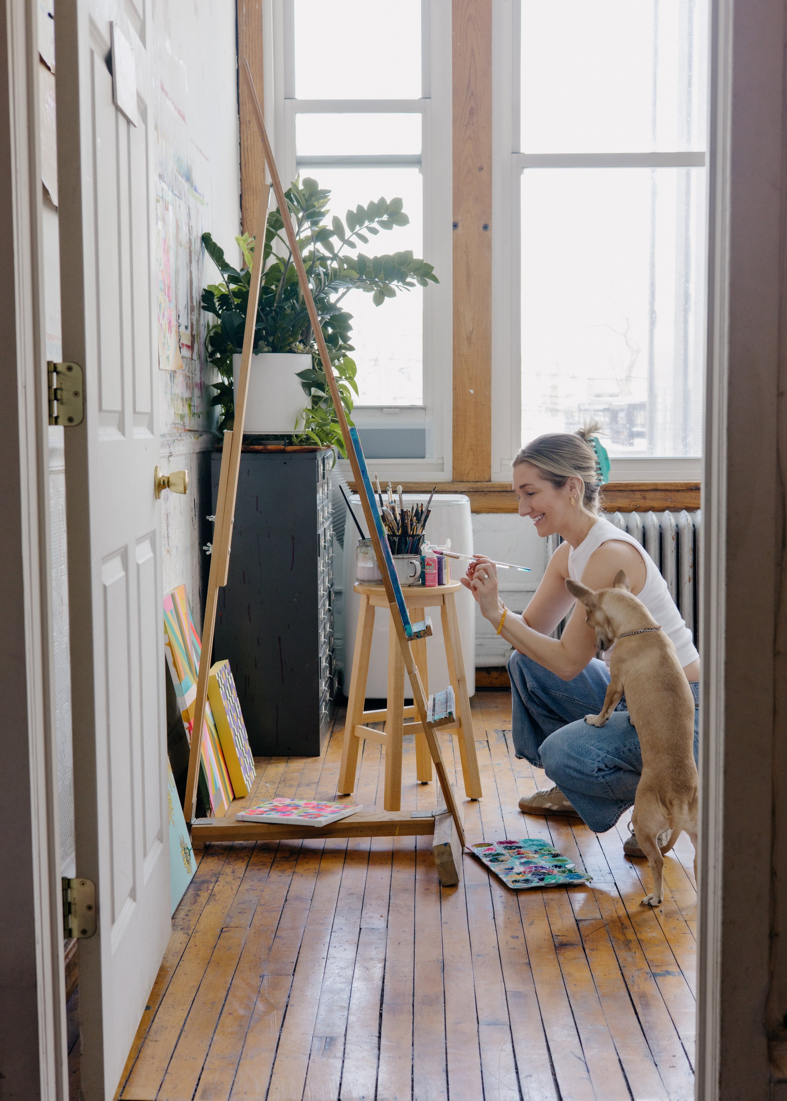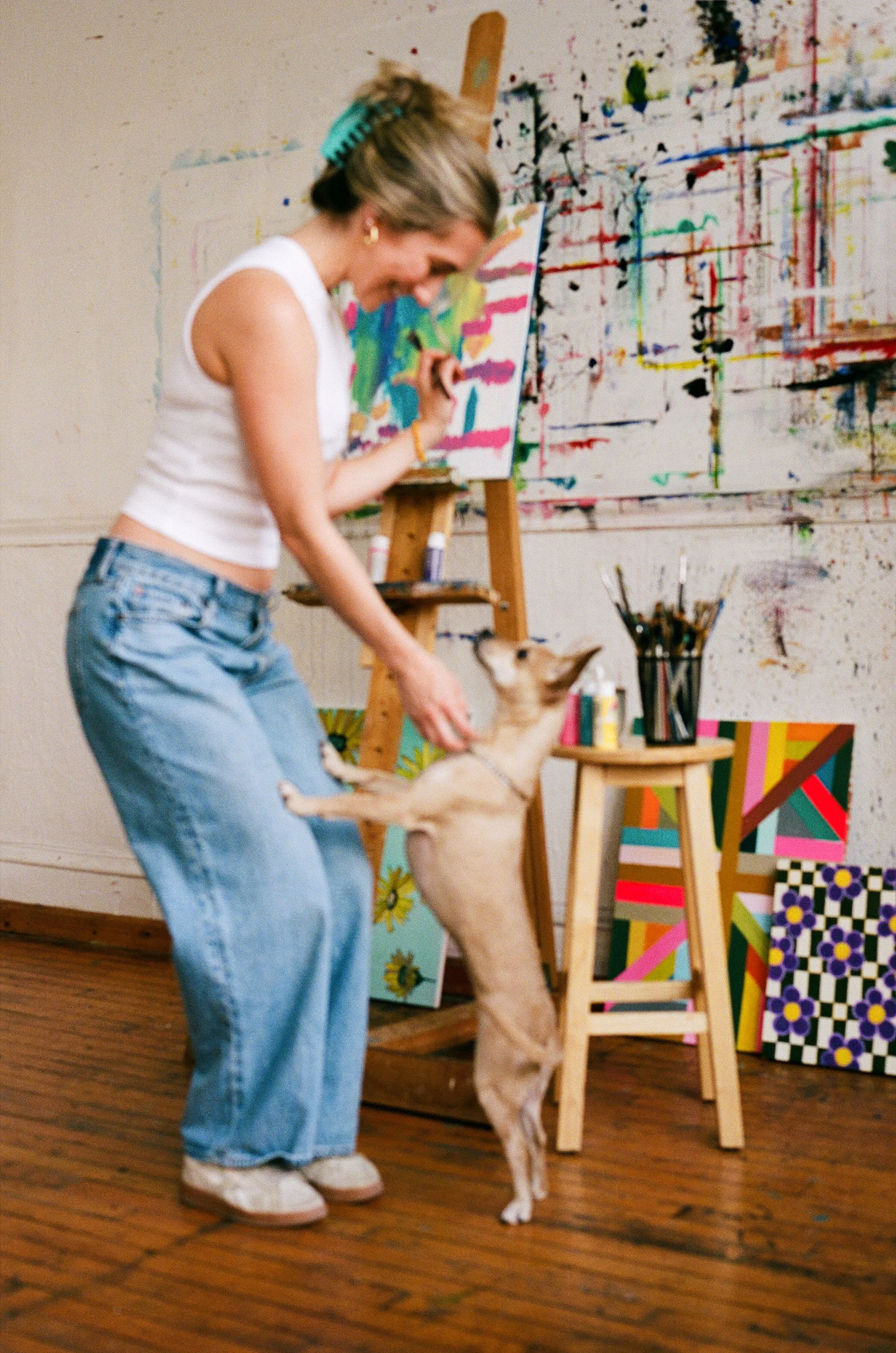 2. Petting a dog before art-making can lower anxiety and unlock creativity.